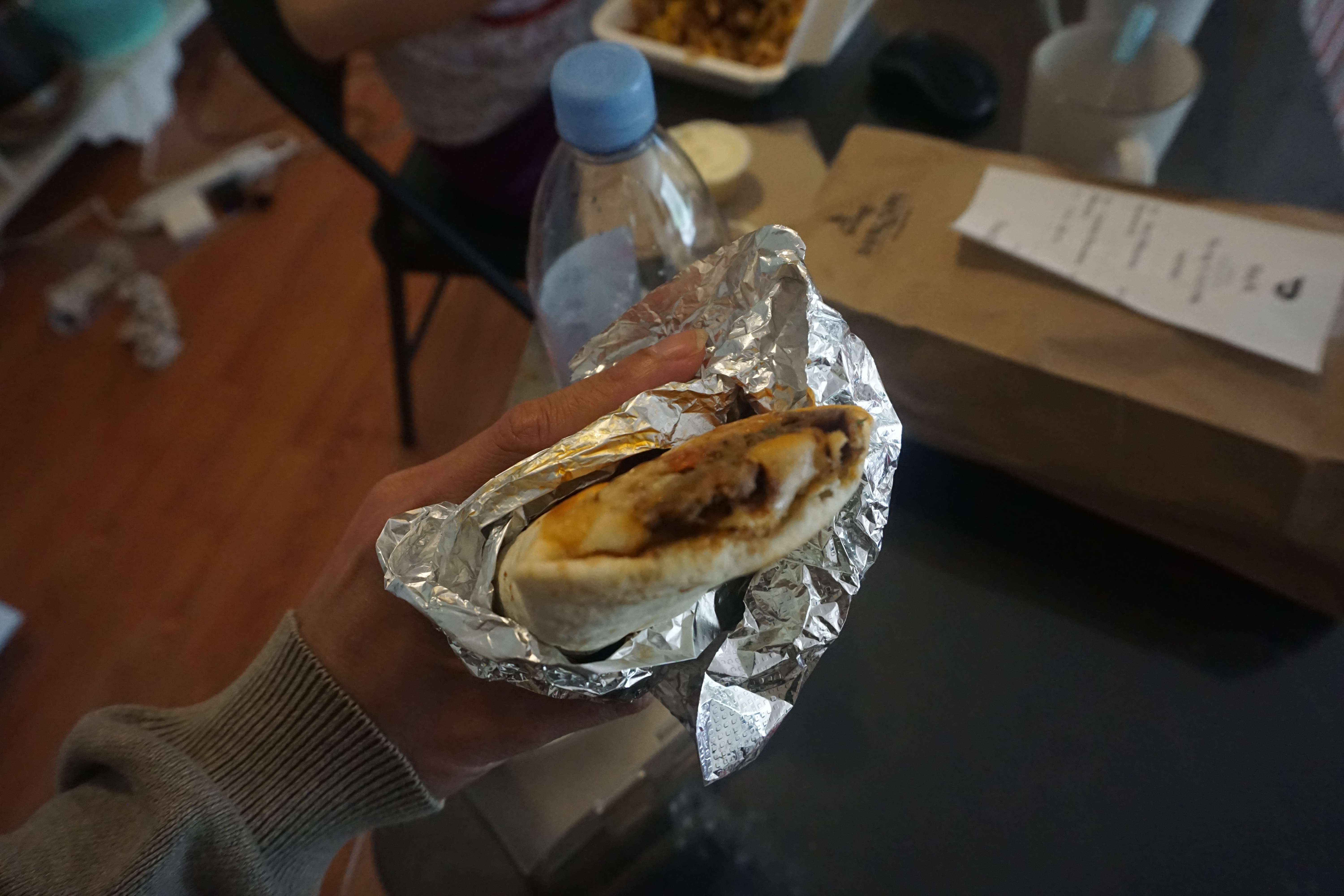 and the Beef Shawarma Sandwich (rolled with tahini sauce, tomato, onion, pickles, parsley and sumac spices).Pretty good Mediterranean flavor in both dishes, and filling too.